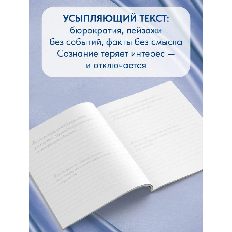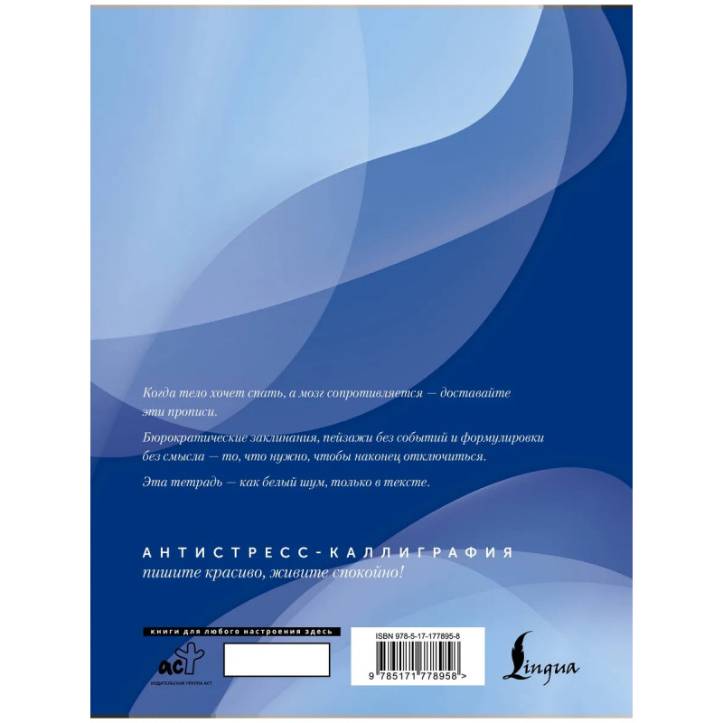 Пора спать, а мозг не хочет отключаться? Вновь смотрите в потолок, ведете внутренние монологи и вспоминаете ту позорную ситуацию из 2017 года? Эта необычная тетрадь придет на помощь. Пока рука методично выводит буквы, сознание теряет интерес к реальности и уходит в сон. Усыпляюще-бессмысленные факты, сухие формулировки и описания пейзажей, в которых ничего не происходит, гарантируют полный сброс мыслей. Прописи серии "Антистресс-каллиграфия" подходят для всех, кто хочет восстановить навык письма от руки, а также избавиться от беспокойства.