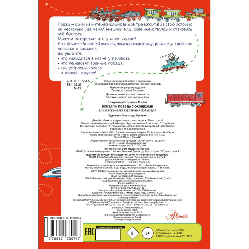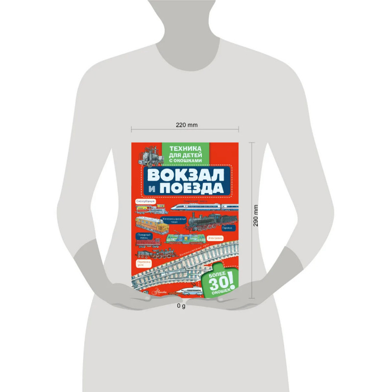 Отправляйтесь в захватывающее путешествие по миру поездов и железных дорог с этой увлекательной книгой! На каждой странице маленьких читателей ждут сюрпризы — множество окошек, за которыми скрываются интересные факты о поездах, вокзалах и всём, что связано с железнодорожными приключениями. Узнайте, как устроен вокзал, что происходит в кабине машиниста, как готовят поезд к отправлению и многое другое. Каждое окошко — это новый шаг в мир удивительных открытий. Яркие иллюстрации и простые объяснения сделают чтение этой книги настоящим удовольствием для детей и их родителей. Эта книга не только развлечёт, но и расширит кругозор, пробудив интерес к железным дорогам и путешествиям. Идеально для маленьких исследователей, которые мечтают отправиться в увлекательное путешествие!