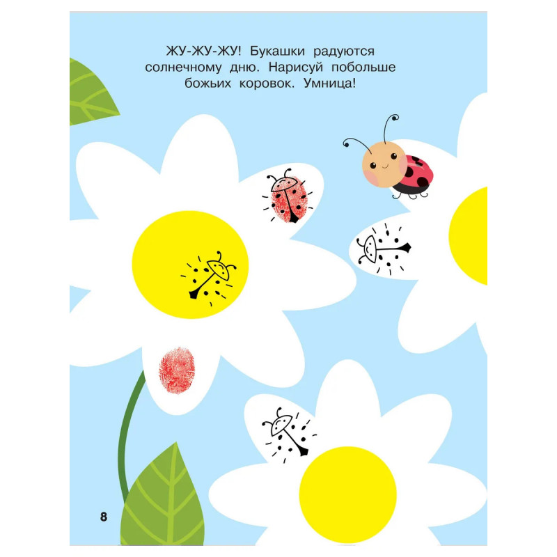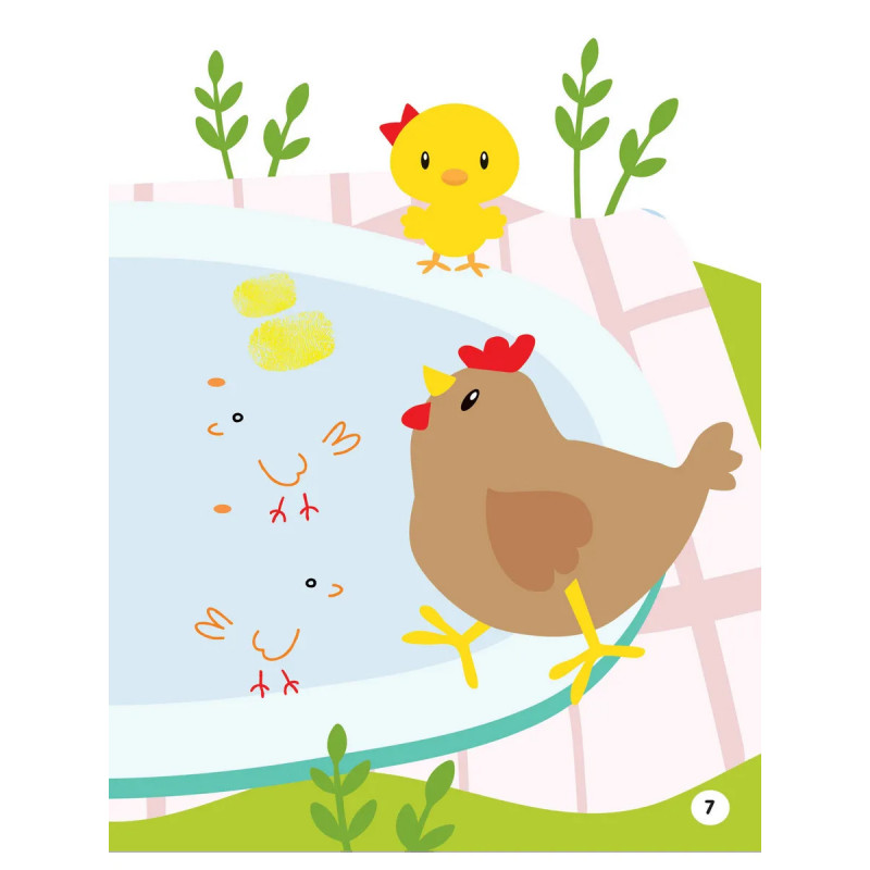 «Животные. Рисуем пальчиками. Раскраска с заданиями» — это отличная развивающая книга с красивыми рисунками. К творчеству всё готово — к картонной обложке приклеен пластиковый лоток со штемпельными подушками-губками, пропитанными краской. 7 цветов: красный, синий, зелёный, жёлтый, оранжевый, розовый, фиолетовый. Краски легко смываются мыльной водой или влажными салфетками. Книга на спирали, поэтому листы легко перекидываются из стороны в сторону, открываясь на 360 градусов. Книга небольшого формата — можно взять с собой в дорогу, на дачу, в путешествие. На 64 плотных листах ребёнок сможет раскрасить картинки пальчиками, дорисовать карандашом или создать собственные шедевры. Свобода самовыражения — лучший способ активизировать творческие способности. Ребёнок получит новый тактильный опыт, исследуя на ощупь текстуру бумаги и красок. Занятия с мамой способствуют формированию социальных связей. Процесс рисования, в котором ребёнок выражает свои чувства без слов, выполняет функцию антистресса.