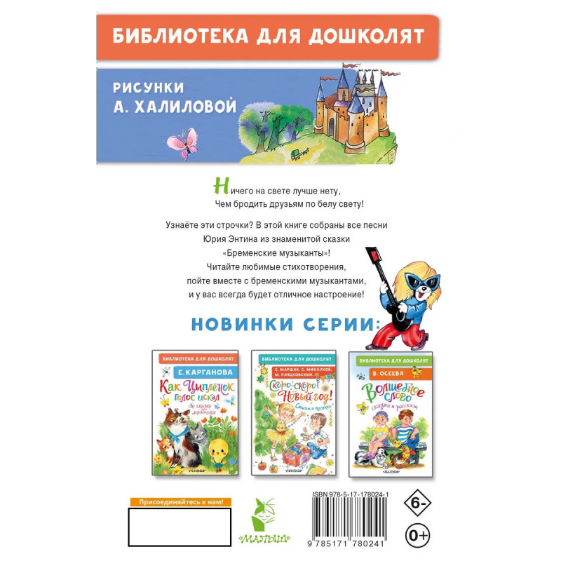 Ничего на свете лучше нету, Чем бродить друзьям по белу свету! Узнаёте эти строчки? В этой книге собраны все песни Юрия Энтина из знаменитой сказки «Бременские музыканты»! Читайте любимые стихотворения, пойте вместе с бременскими музыкантами, и у вас всегда будет отличное настроение!