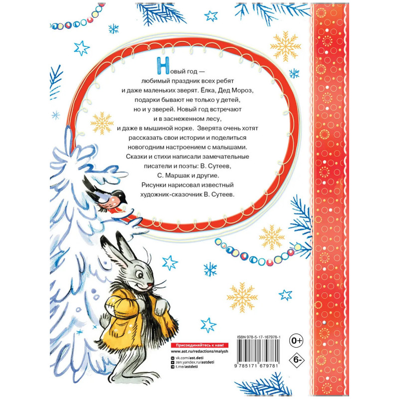 Новый год любимый праздник всех ребят и даже маленьких зверят. Ёлка, Дед Мороз, подарки бывают не только у детей, но и у зверей. Новый год встречают и в заснеженном лесу, и даже в мышиной норке. Зверята очень хотят рассказать свои истории и поделиться новогодним настроением с малышами. Сказки и стихи написали замечательные писатели и поэты: В. Сутеев, С. Маршак и другие. Рисунки нарисовал известный художник-сказочник В. Сутеев.