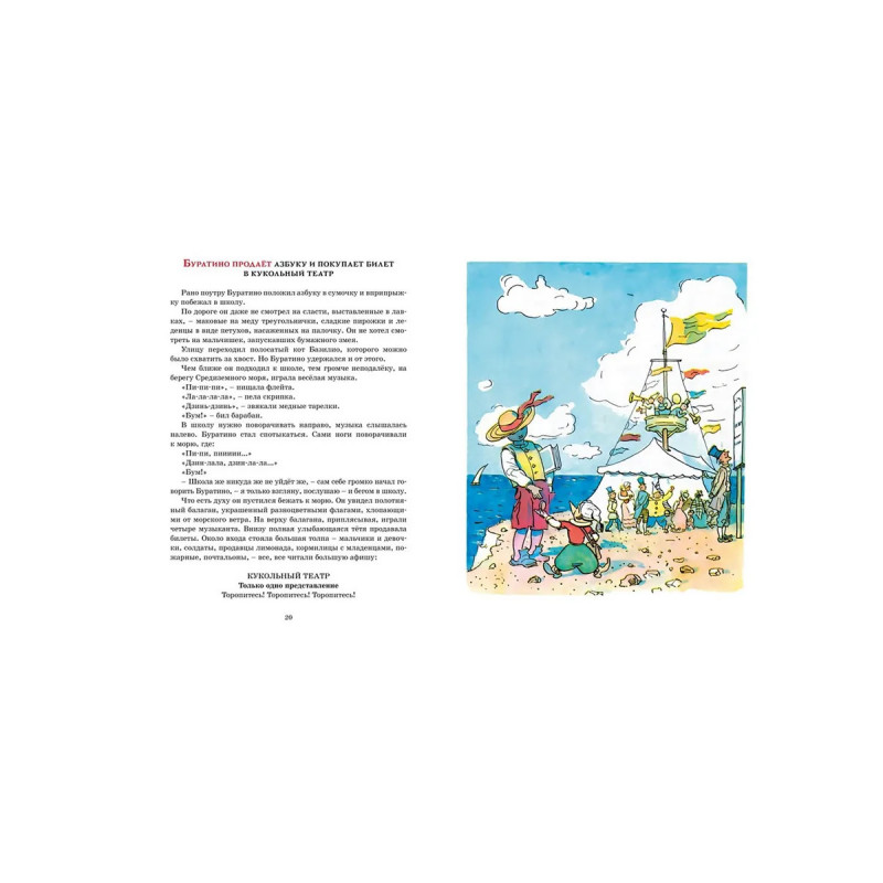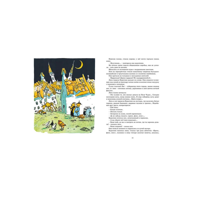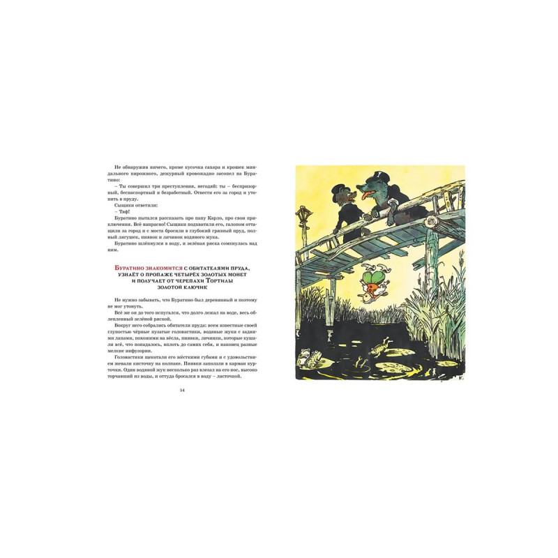 Повесть-сказка А.Н. Толстого «Золотой ключик, или Приключения Буратино» вышла в свет в 1936 году и сразу стала одной из самых любимых, причём не только детьми, но и взрослыми. Необычайная история про деревянного человечка с длинным носом, наивного и доверчивого озорника, давно стала классикой и по достоинству вошла в золотой фонд детской литературы. А художник А. Каневский в своих рисунках сумел замечательно передать дух этой удивительной книги.