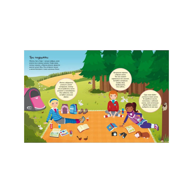 Помоги трём подружкам найти всё для школы, загляни на репетицию спектакля, сходи в музей и на соревнования по лёгкой атлетике.