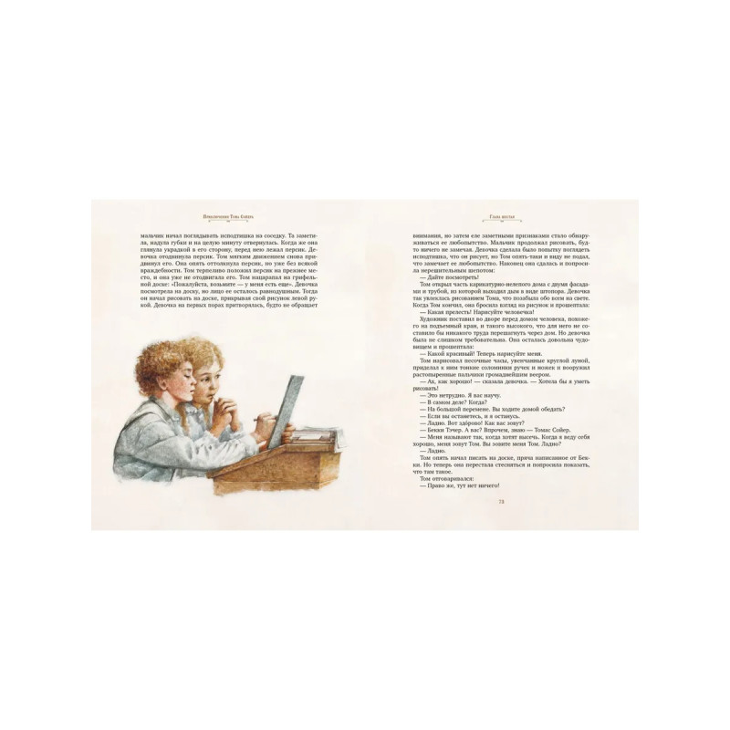 Пожалуй, нет более известной повести, чем повесть Марка Твена «Приключения Тома Сойера», которую с удовольствием читают уже более ста лет дети и взрослые. И это совсем не удивительно, ведь в ней есть все, что так привлекает читателя, — романтика приключений, живой юмор, захватывающий своими неожиданными поворотами сюжет и даже томительные любовные переживания главного героя — сорванца и проказника Тома Сойера!