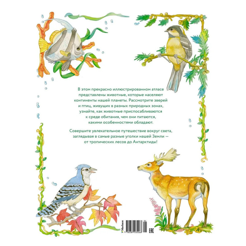В этом прекрасно иллюстрированном атласе представлены животные, которые населяют континенты нашей планеты. Рассмотрите зверей и птиц, живущих в разных природных зонах, узнайте, как животные приспосабливаются к среде обитания, чем они питаются,какими особенностями обладают. Совершите увлекательное путешествие вокруг света,заглядывая в самые разные уголки нашей Земли — от тропических лесов до Антарктиды!
