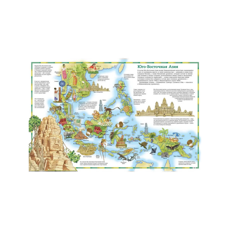 Листая этот прекрасно иллюстрированный атлас, вы совершите увлекательное кругосветное путешествие: исследуете самые отдалённые уголки планеты, узнаете множество любопытных фактов о достопримечательностях разных стран, оцените красоту уникальных природных объектов и необычных древних сооружений. На картах отмечены полезные ископаемые, памятники архитектуры, а также животные, обитающие в разных природных зонах.