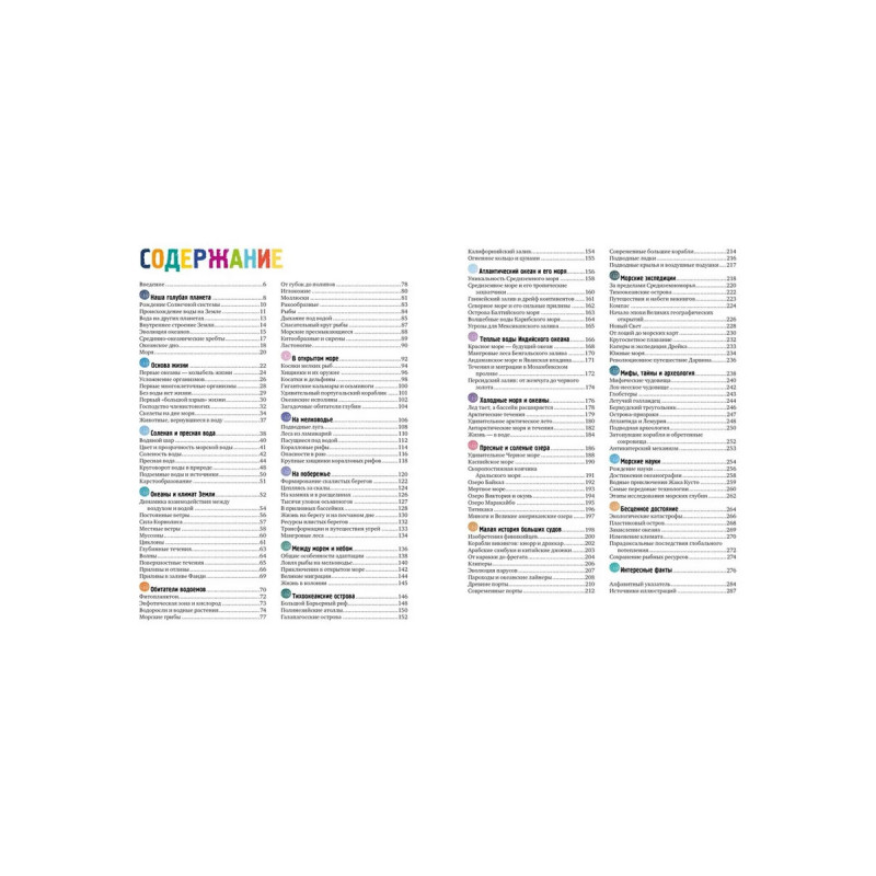 Моря и океаны – колыбель жизни на Земле и дом для огромного множества живых существ, от крошечного планктона до гигантских китов. Большая часть нашей планеты покрыта водой, но тем не менее этот удивительный мир до сих пор не до конца изучен. Совершите невероятное путешествие по подводному миру: побывайте в самых глубоких точках океана, познакомьтесь с множеством рыб и животных, которые там обитают. Прочитайте о том, как люди испокон веков покоряют и изучают океанские просторы – отправляются в масштабные экспедиции, строят лодки и корабли, а также создают исследовательские аппараты, способные погружаться на огромную глубину.