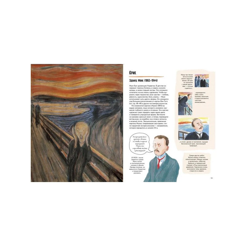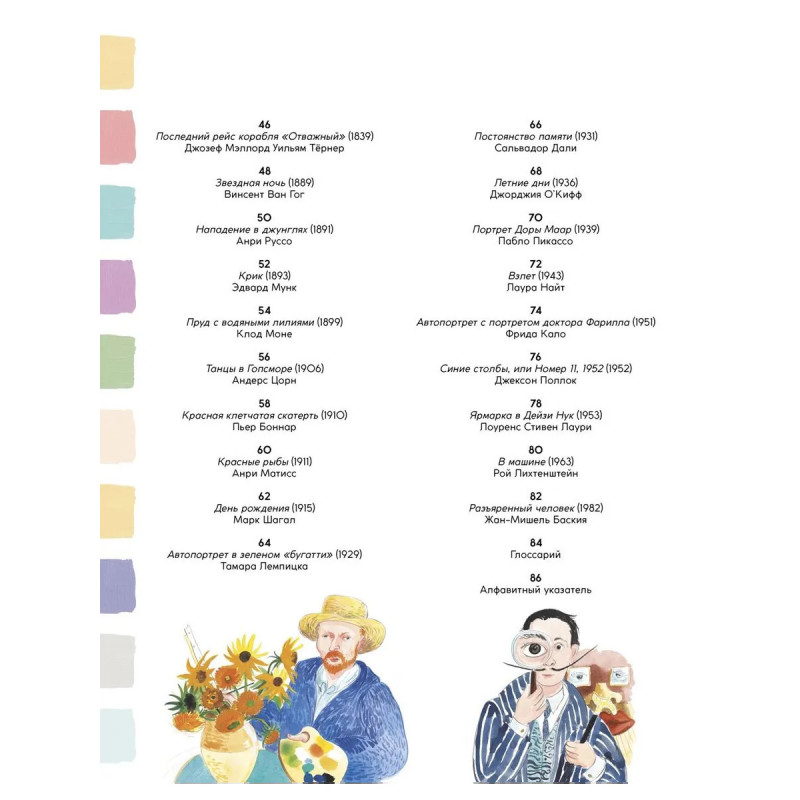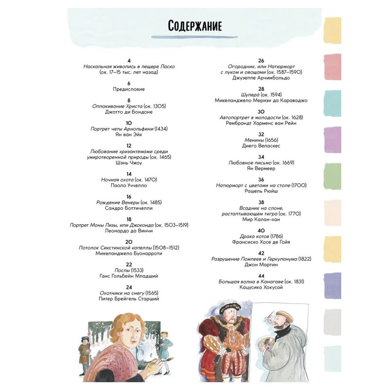 Отправьтесь в удивительное путешествие сквозь время и исследуйте историю изобразительного искусства — от наскальных рисунков в пещере Ласко до ярких, эмоциональных работ Жан-Мишеля Баския. На страницах этой книги вы найдете полотна, знаменитые на весь мир, и замечательные, но малоизвестные творения. Взгляните на холсты Рембрандта, Пабло Пикассо, Фриды Кало и Уильяма Тёрнера. Узнайте, как развивалось и преображалось искусство с течением времени.