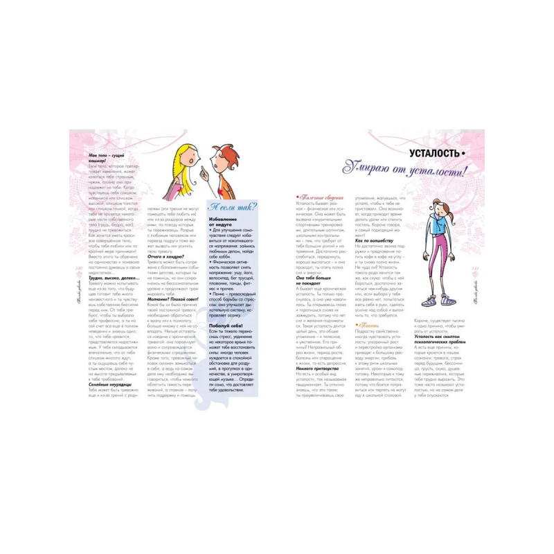 Эта энциклопедия станет тебе близкой подругой, многое объяснит в жизни, подскажет, даст совет, но ты ни за что не найдешь в ней скучных упреков и нотаций. Такую подругу зовут на помощь и когда дела хуже некуда и когда все чудесно, потому что она помогает тебе стать именно такой девушкой, какой ты мечтаешь быть! Возможно, ты обратишься к ней, когда у тебя возникнут трудности, когда ты задумаешься, как сказать парню, что он тебе нравится, когда поссоришься с родителями или решишь, что пора худеть.