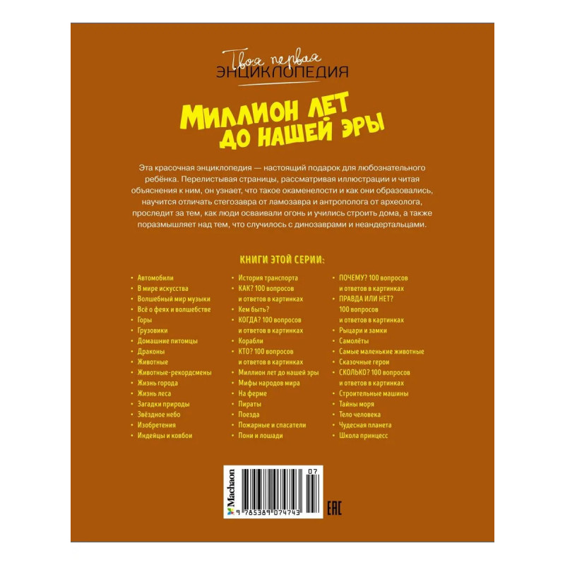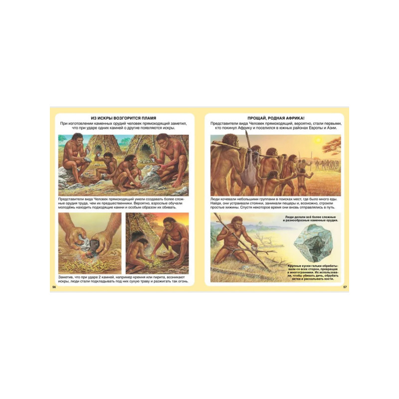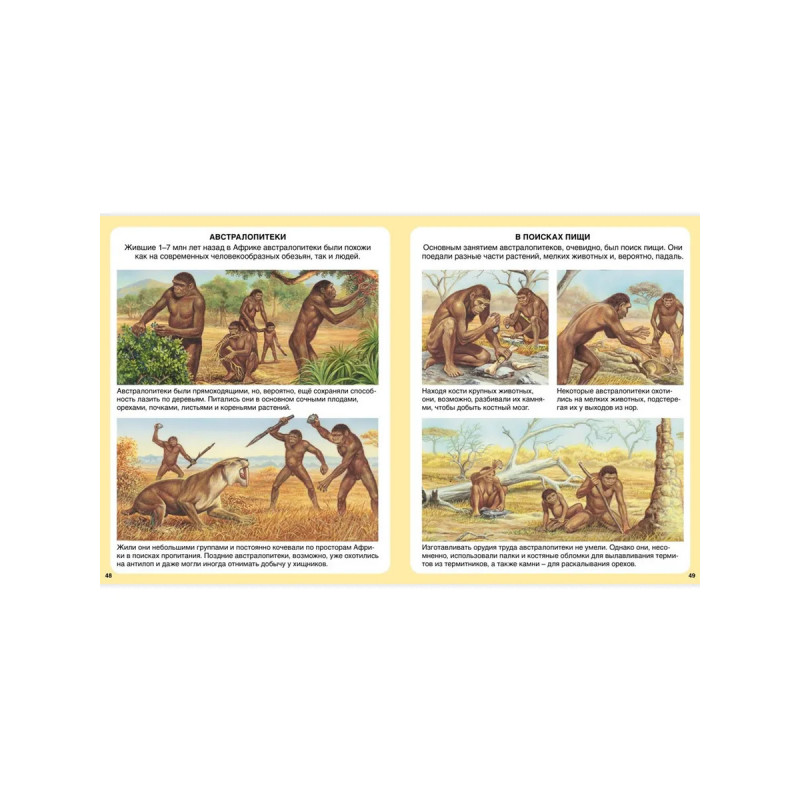 Эта красочная энциклопедия — настоящий подарок для любознательного ребенка. Перелистывая страницы, рассматривая иллюстрации и читая объяснения к ним, он узнает, что такое окаменелости и как они образовались, научится отличать стегозавра от ламозавра и антрополога от археолога, проследит за тем, как люди осваивали огонь и учились строить дома, а также поразмышляет над тем, что случилось с динозаврами и неандертальцами.