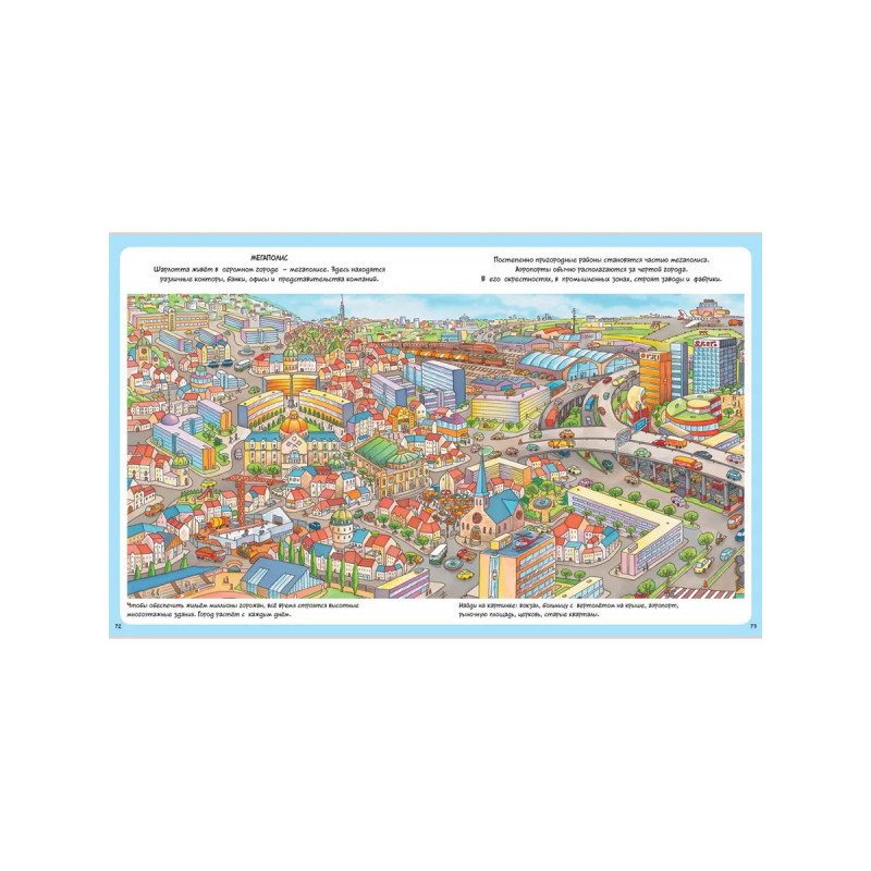 Путешествуя по страницам этой красочной энциклопедии, юные читатели узнают, как строили города и какими они были в разные исторические эпохи; когда на улицах появились первые поезда и многоэтажные здания; как в дома попадает электричество, откуда берется вода в кранах, как работает телефон. Книга научит ориентироваться в городе, правильно вести себя на улице, в метро и автобусе, объяснит, зачем нужны банк, почта и мэрия.