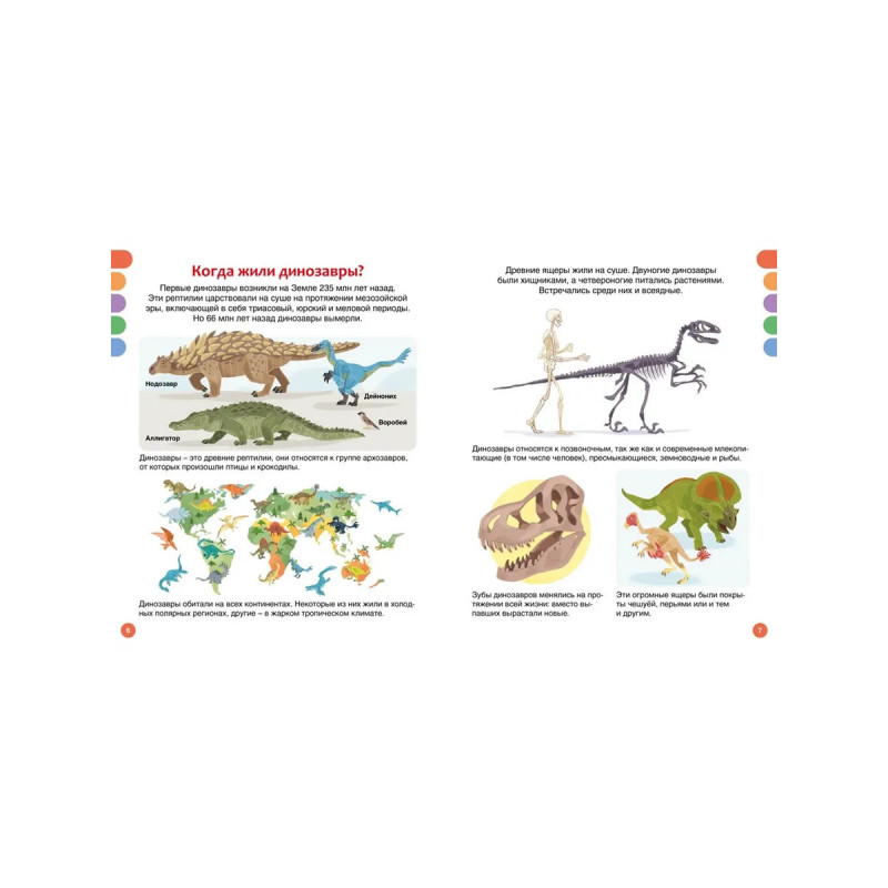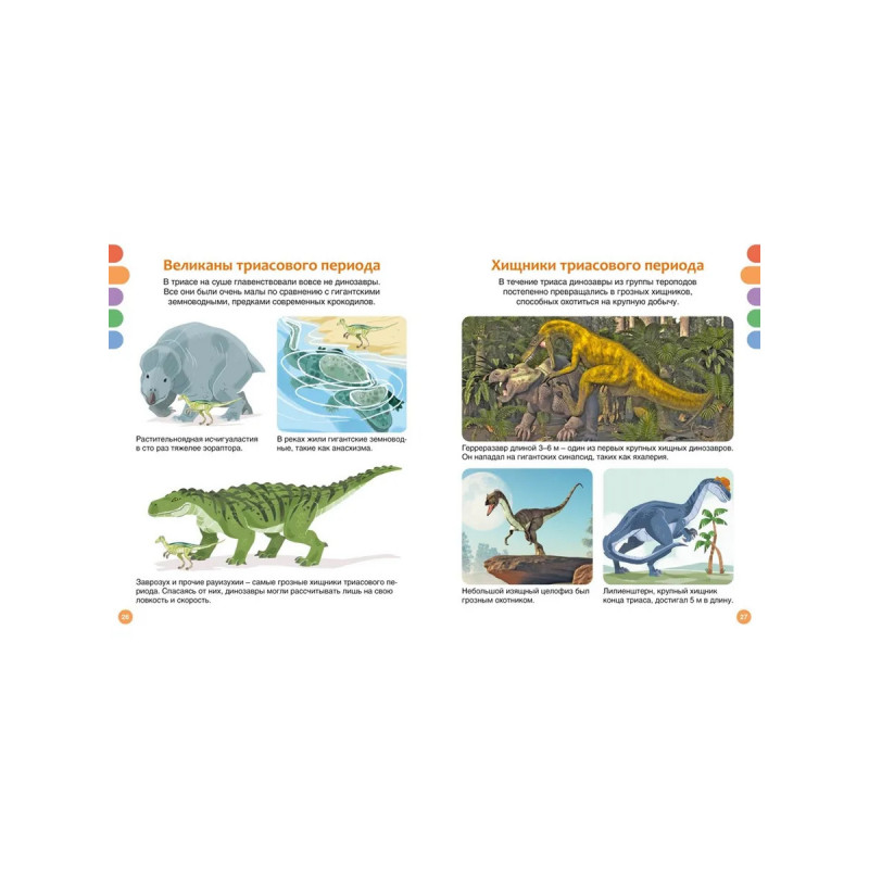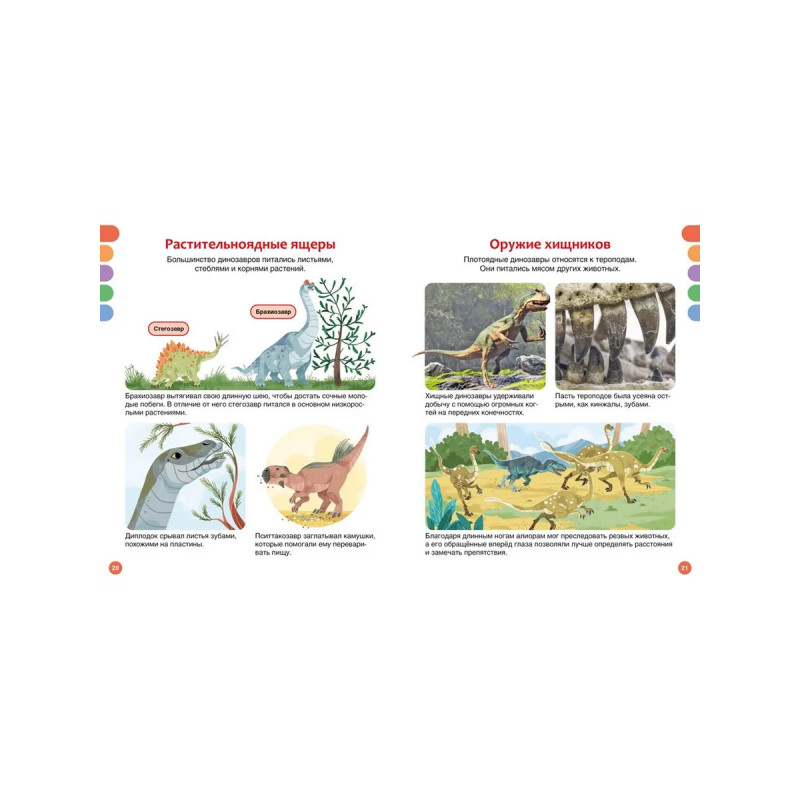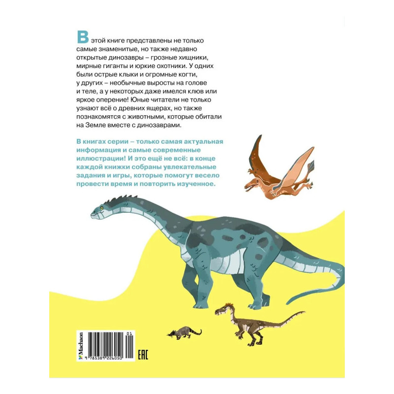 В этой книге представлены не только самые знаменитые, но также недавно открытые динозавры – грозные хищники, мирные гиганты и юркие охотники. У одних были острые клыки и огромные когти, у других – необычные выросты на голове и теле, а у некоторых даже имелся клюв или яркое оперение! Юные читатели не только узнают всё о древних ящерах, но также познакомятся с животными, которые обитали на Земле вместе с динозаврами. В книгах серии – только самая актуальная информация и самые современные иллюстрации! И это ещё не всё: в конце каждой книжки собраны увлекательные задания и игры, которые помогут весело провести время и повторить изученное.
