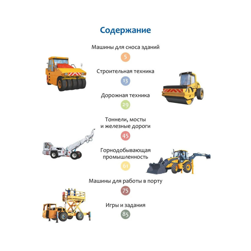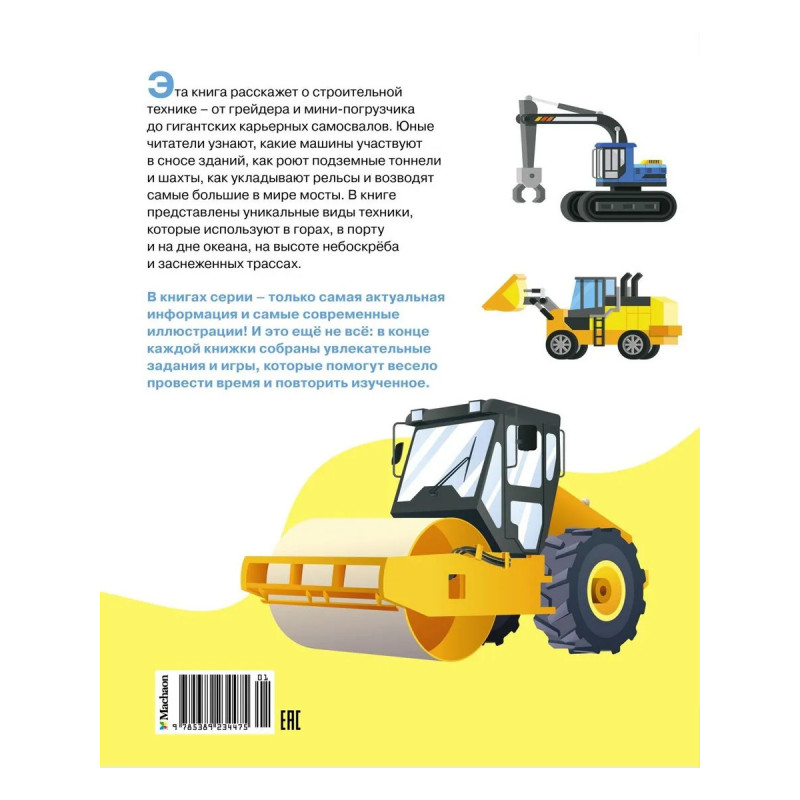 Эта книга расскажет о строительной технике – от грейдера и мини-погрузчика до гигантских карьерных самосвалов. Юные читатели узнают, какие машины участвуют в сносе зданий, как роют подземные тоннели и шахты, как укладывают рельсы и возводят самые большие в мире мосты. В книге представлены уникальные виды техники, которые используют в горах, в порту и на дне океана, на высоте небоскрёба и заснеженных трассах. В книгах серии – только самая актуальная информация и самые современные иллюстрации! И это ещё не всё: в конце каждой книжки собраны увлекательные задания и игры, которые помогут весело провести время и повторить изученное.