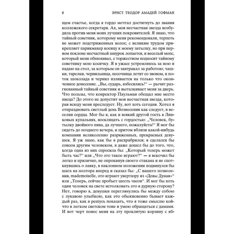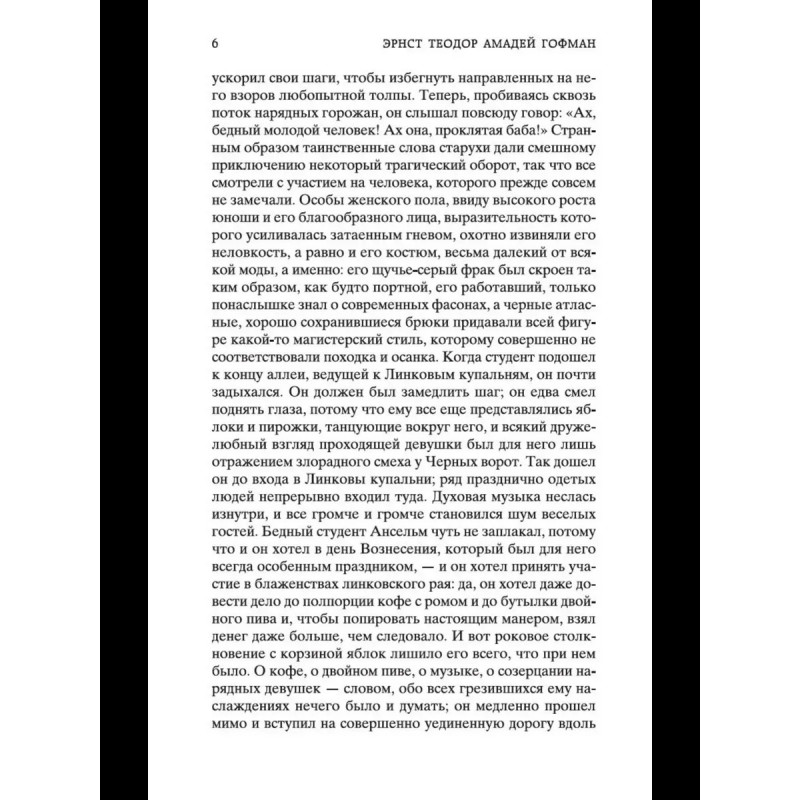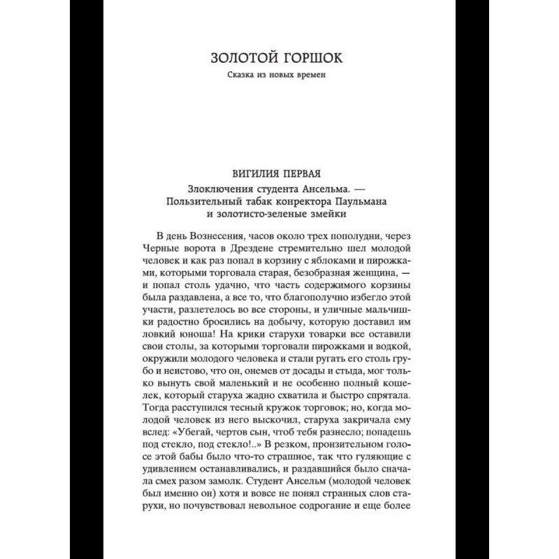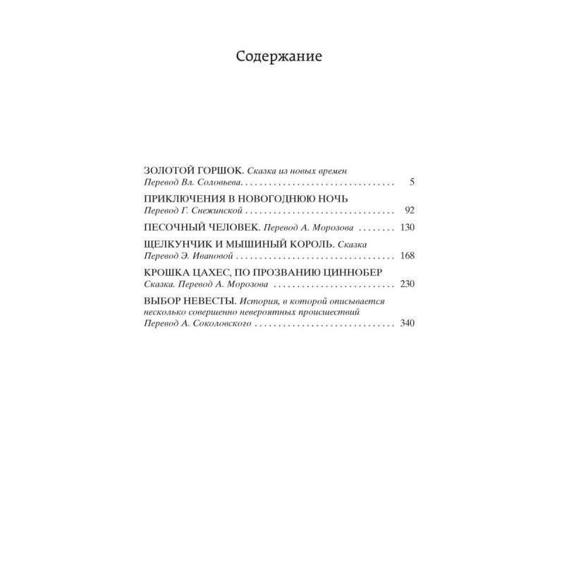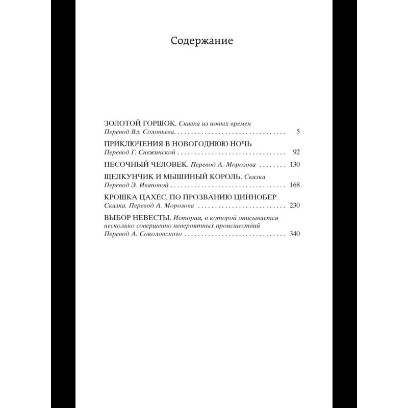 В сборник произведений знаменитого немецкого прозаика Эрнста Теодора Амадея Гофмана вошли его самые известные сказки (Золотой горошок, Щелкунчик и мышиный король, Крошка Цахес, по прозванию Циннобер) и новеллы (Приключения в Новогоднюю ночь, Песочный человек, Выбор невесты), которые стали своего рода визитными карточками писателя и со временем были признаны шедеврами европейской романтической прозы. За прихотливой чередой странных, диковинных персонажей, за столкновениями страстей, за невероятными превратностями судеб незримо, а порой и явно присутствует Автор оригинальный мифолог-мистик, певец стихийных духов и творец совмещенных реальностей, под пером которого Дрезден XIX столетия может обернуться утопической Атлантидой, а украшенная к Рождеству детская комната дивной волшебной страной; художник-визионер, одержимый кошмарными наваждениями, странными иллюзиями, зловещими подменами и головокружительными фантасмагориями; язвительный сатирик, зорко подмечающий социальные и нравственные изъян