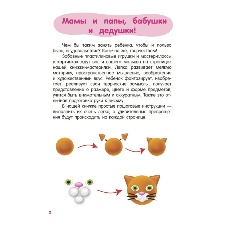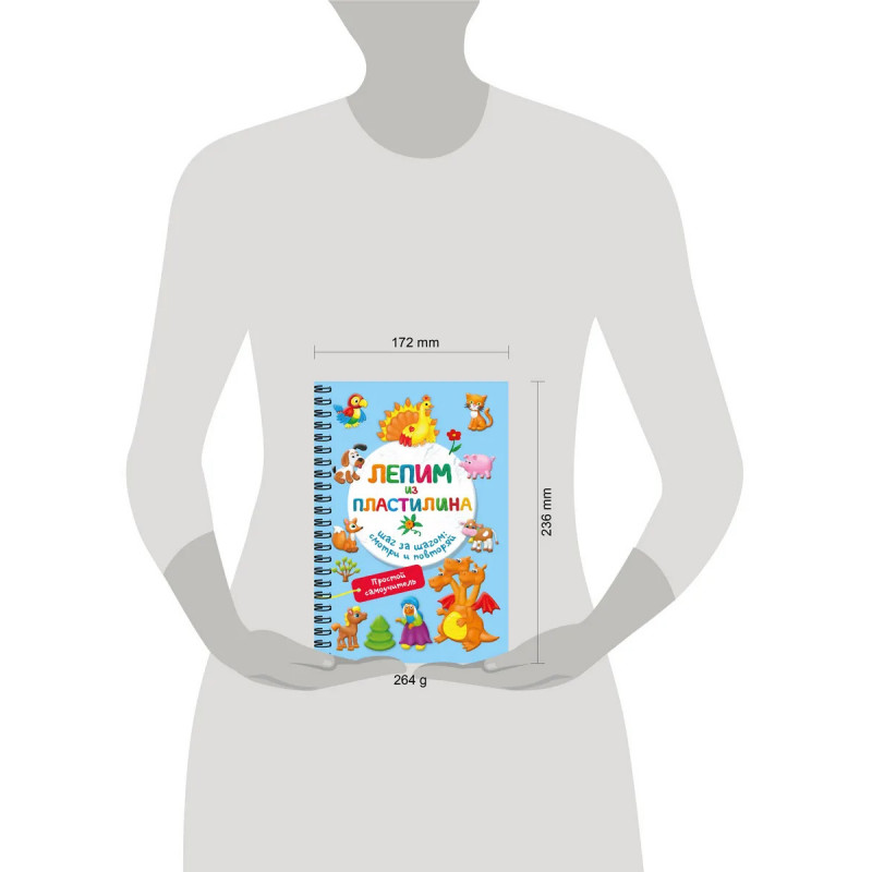 "Лепим из пластилина. Шаг за шагом: смотри и повторяй" — коллекция мастер-классов, которые помогут детям легко освоить искусство лепки. Крупные и красочные пошаговые иллюстрации понятны даже маленькому ребёнку. Как слепить милого котика, забавную черепашку, весёлую овечку, красавицу-сову, Змея Горыныча и другие поделки — на красочных страницах. Занимаясь лепкой с замечательной книжкой, малыш разовьёт мелкую моторику и воображение, подготовит руку к письму. А родители смогут помочь ребёнку в творческом начинании.
