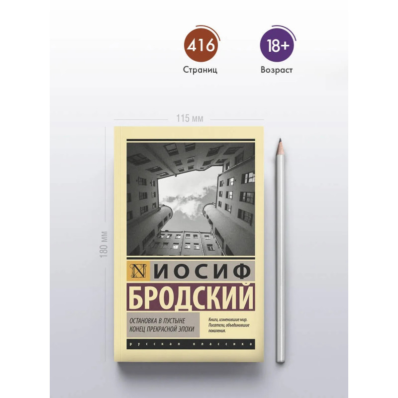 — Лауреат Нобелевской премии по литературе Иосиф Бродский — один из самых известных поэтов XX века. — В данное издание вошли сборники «Остановка в пустыне» и «Конец прекрасной эпохи», составленные из стихотворений, написанных Бродским еще до отъезда из СССР. — Оба сборника были впервые изданы в США и появились в России лишь перед самой смертью поэта. — Издание в серии «Эксклюзив: Русская классика» — в удобном карманном формате и узнаваемом оформлении.