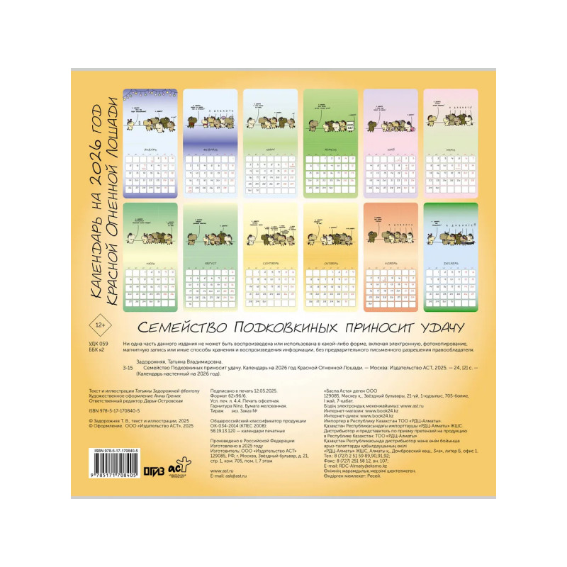Настенный календарь на 2026 год Красной Огненной Лошади с иллюстрациями Татьяны Задорожней fevrony: • арт-терапия и спасение от тревоги и стресса • забавные жизнеутверждающие иллюстрации • прекрасный подарок