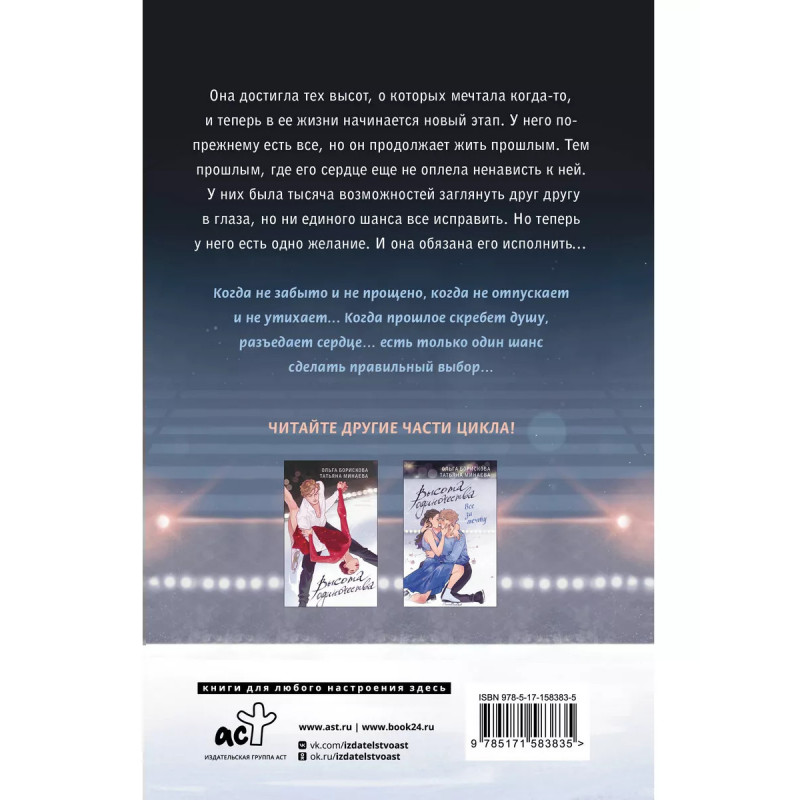 Плен одиночества. Продолжение трогательной истории Ринаты и Игоря - олимпийских фигуристов, чьи жизни когда-то сплелись в одну, чтобы в конце концов разойтись. Кажется, навсегда У него есть всё, но его сердце опутано ненавистью к ней. Она вот-вот выйдет замуж за любимого мужчину и полна решимости вернуться в Россию, чтобы завершить карьеру. Но Игорь, новый президент Федерации фигурного катания, отказывается принять её отставку. Теперь ей предстоит встретиться лицом к лицу со своим прошлым, в последний раз выйдя на лёд Долгожданная заключительная часть цикла "The Show Must Go On".