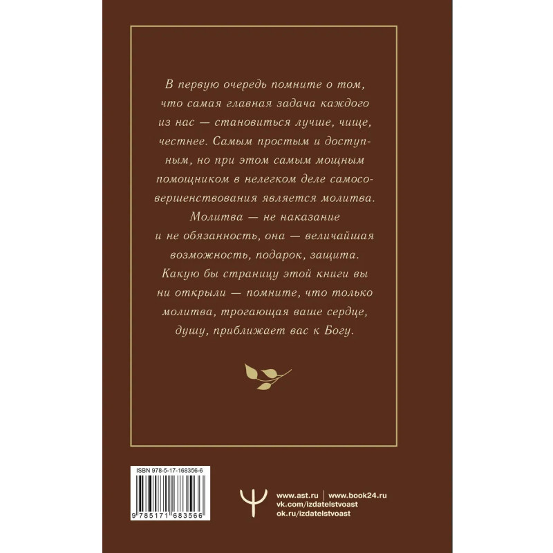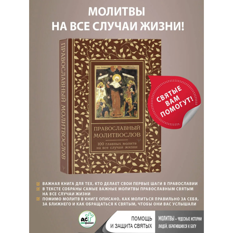 Ответы на такие вопросы вы найдете в этой книге. В ней не только собраны самые важные молитвы православным святым на все случаи жизни, но и подробно рассказано о правилах чтения молитв за себя и других, дома и в церкви, ежедневно и в особых ситуациях. В этом молитвослове также собраны истории людей — свидетельства чудес. Происходящих по молитвам Всевышнему и его святым угодникам. Пусть эти истории вдохновят вас и помогут вам найти свой путь к Богу.