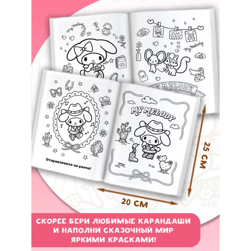 Готов отправиться в самое милое путешествие? Тогда тебя ждёт очаровательная My Melody и её друзья, с которыми ты точно подружишься! Скорее бери любимые карандаши и наполни сказочный мир яркими красками!
