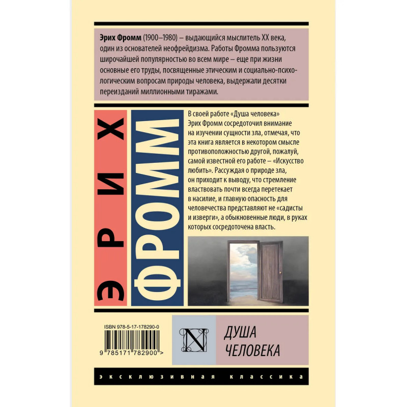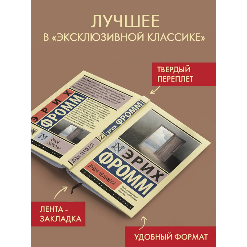 — Психолог, социолог и философ Эрих Фромм — один из крупнейших мыслителей XX века, автор таких работ как «Искусство быть», «Бегство от свободы» и «Анатомия человеческой деструктивности». — «Душа человека» продолжает исследование темной стороны души, которое Фромм начал в своей знаменитой работе «Бегство от свободы» и которое позже дополнил и развил в «Анатомии человеческой деструктивности». На сей раз в центре внимания автора оказалась сущность зла. — Издание в серии «Эксклюзивная классика (Лучшее)» — в твердой обложке и узнаваемом оформлении.