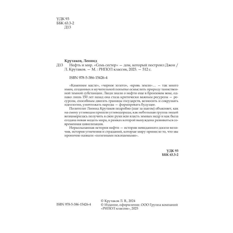Люди с древних времен боялись нефти — приписывали ей инфернальные свойства, связывали с адом и нечистой силой. Однако в середине XIX века все изменилось: «черное золото» стало символом богатства, прогресса, власти и немыслимых возможностей. В первой книге двухтомника «Нефть и мир» политолог Леонид Крутаков рассказывает о проекте господства, реализованном сначала в масштабах одной страны, а затем охватившем всю планету.Первые 2000 экземпляров с суперобложкой.