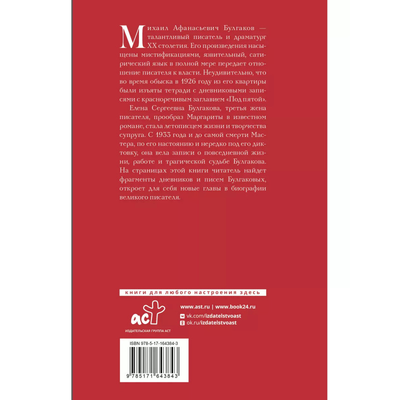 Михаил Афанасьевич Булгаков талантливый писатель и драматург XX столетия. Его произведения насыщены мистификациями; язвительный, сатирический язык в полной мере передает отношение писателя к власти. Неудивительно, что во время обыска в 1926 году из его квартиры были изъяты тетради с дневниковыми записями с красноречивым заглавием "Под пятой". Елена Сергеевна Булгакова, третья жена писателя, прообраз Маргариты в известном романе, стала летописцем жизни и творчества супруга. С 1933 года и до самой смерти Мастера, по его настоянию и нередко под его диктовку, она вела записи о повседневной жизни, работе и трагической судьбе Булгакова. На страницах этой книги читатель найдет фрагменты дневников и писем Булгаковых, откроет для себя новые главы в биографии великого писателя.