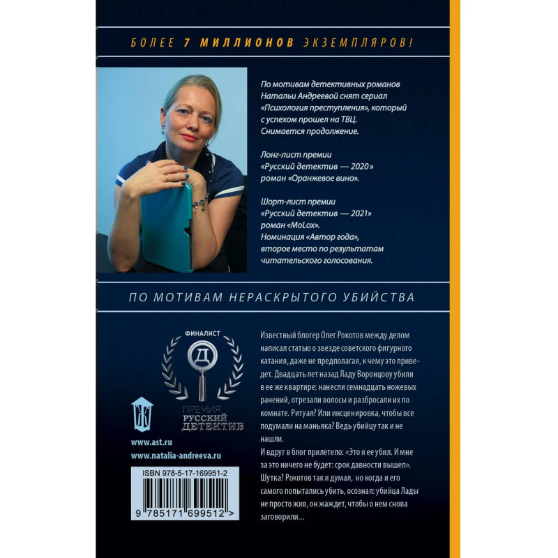 - Для всех поклонников таланта звезды остросюжетной прозы Натальи Андреевой! Переиздание бестселлера в удобном карманном формате. - История написана по мотивам реального нераскрытого дела о трагической смерти советской фигуристки. Убийца возвращается за новой жертвой спустя 20 лет, а у оперативников по-прежнему нет никаких зацепок. - Наталья Андреева — популярный автор остросюжетных психологических романов, финалист премии «Русский детектив». Суммарный тираж книг писательницы — более 7 миллионов экземпляров. По пятнадцати романам автора снят сериал «Психология преступления». - Серия «Бестселлеры Натальи Андреевой».