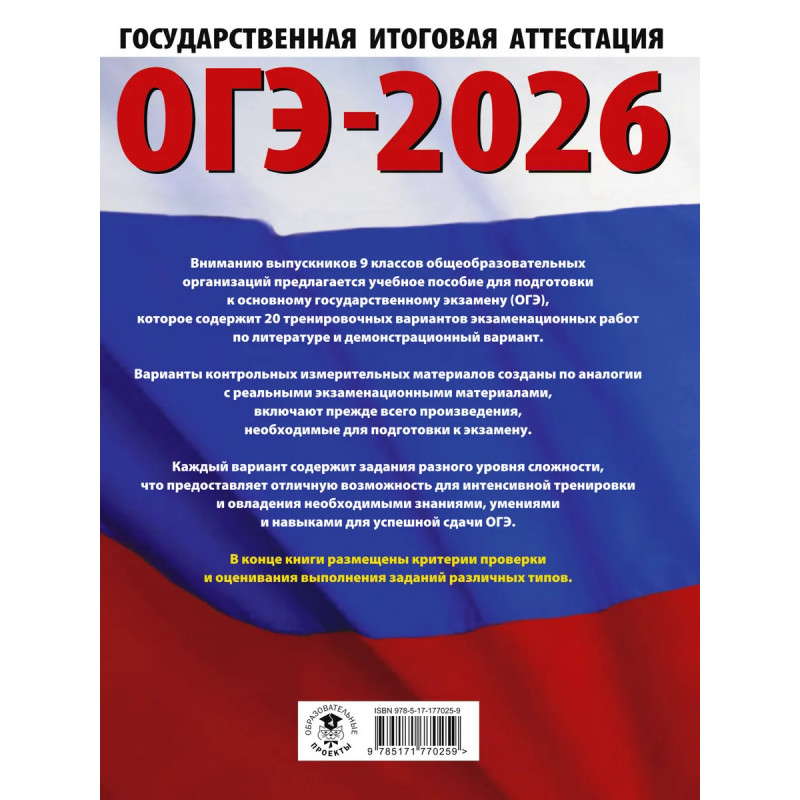 ОГЭ-2026. Литература. 20 тренировочных вариантов