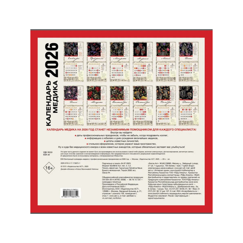 Характеристики Винтажный календарь медика с проф. праздниками на 2026