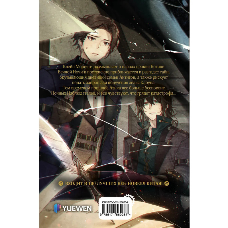 Клейн Моретти размышляет о планах церкви Богини Вечной Ночи и постепенно приближается к разгадке тайн, окутывающих дневники семьи Антигон, а также рискует подать запрос для получения зелья Клоуна. Тем временем прошлое Азика все больше беспокоит Ночных Наблюдателей, и все чувствуют, что грядет катастрофа…