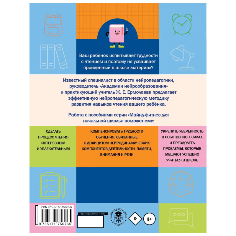 Пособие серии "Майнд-фитнес для начальной школы" содержит материалы для обучающихся 1 класса, основанные на авторской нейропедагогической методике развития навыков чтения. Работа с тетрадью поможет им компенсировать трудности обучения, связанные с дефицитом нейродинамических компонентов деятельности, памяти, внимания и речи. Соответствует ФГОС, ФОП, ФРП НОО.