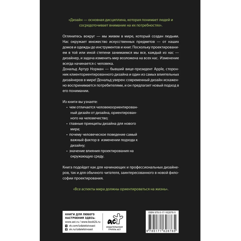 Дональд Артур Норман – бывший вице-президент Apple, сторонник клиенто-ориентированного дизайна и один из самых влиятельных дизайнеров в мире! Дональд уверен: современный дизайн искаженно воспринимается потребителями, и он предлагает новый подход в его понимании.