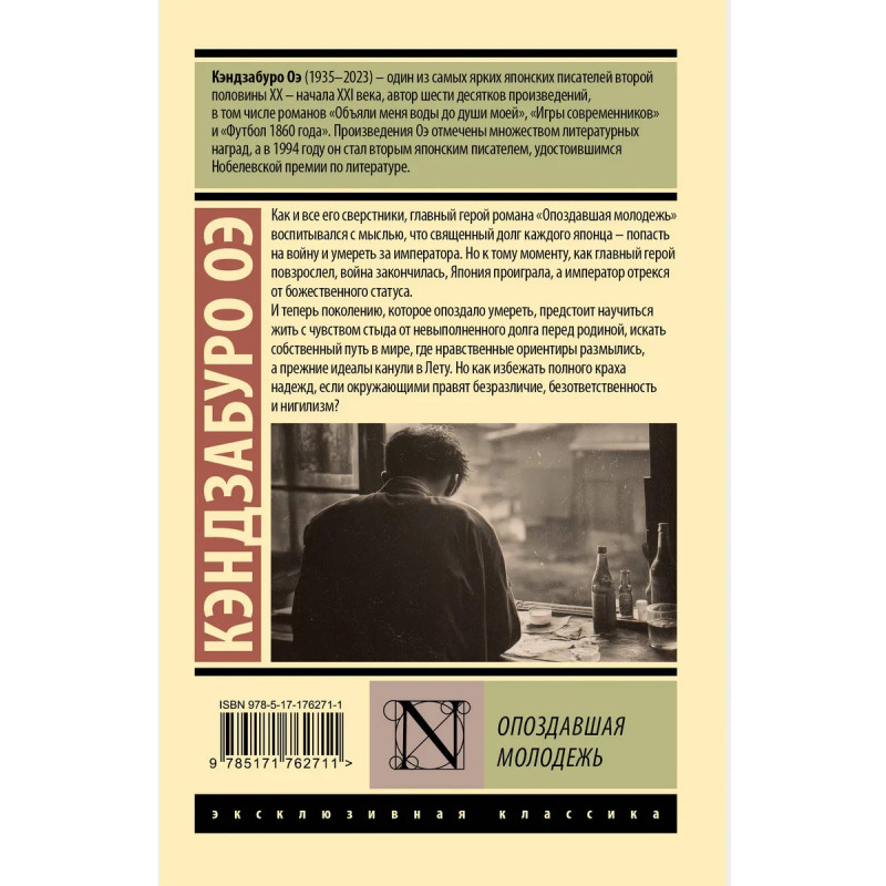 — Кэндзабуро Оэ — автор романов «Футбол 1860 года» и «Объяли меня воды до души моей…», лауреат Нобелевской премии по литературе, один из самых значимых японских писателей второй половины XX века. — Успех и известность пришли к Оэ после публикации «Опоздавшей молодежи», в которой на примере одного человека была показана судьба целого поколения. — Издание в серии «Эксклюзивная классика» — в удобном карманном формате и узнаваемом оформлении.