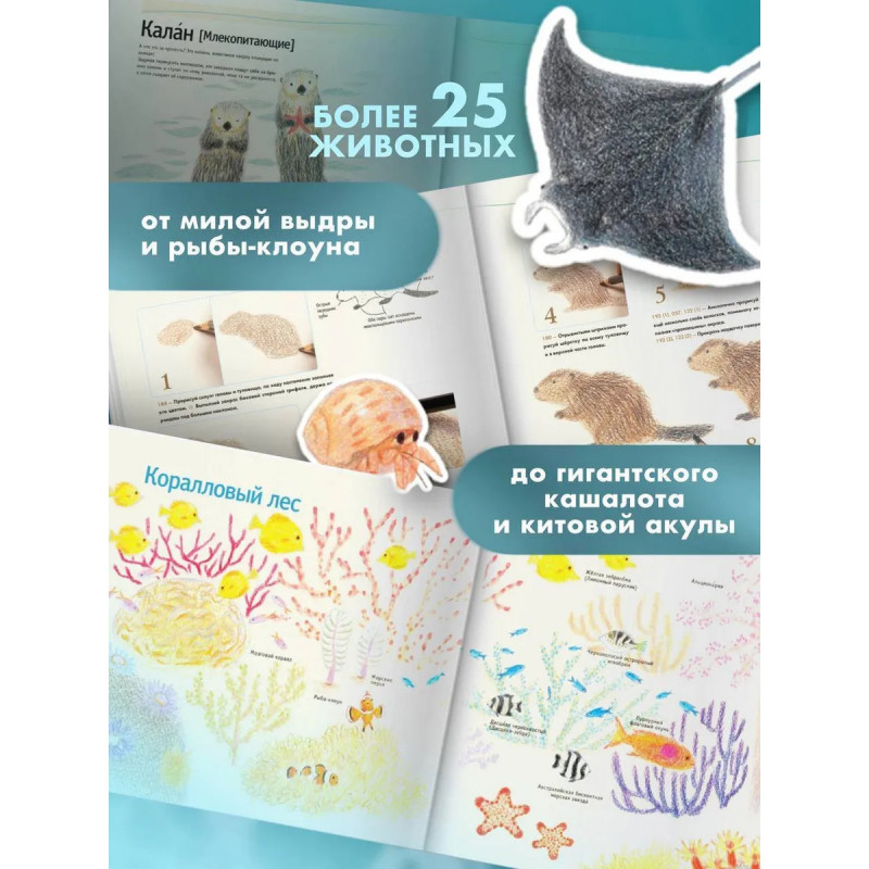 Эта книга содержит простые пошаговые уроки рисования милых водных животных. Благодаря советам художницы Акикуса Ай вы узнаете как рисовать очаровательного пингвина или забавного моржа, какой кит больше, а какой меньше, как наслаивать оттенки, как изобразить предмет с разных ракурсов и даже начнете разбираться в видах нарисованной шёрстки! Этот милый самоучитель по рисованию одновременно расскажет вам о различных водных животных и ознакомит со стилями штриховки, а также возможностями смешивания различных цветов. Для среднего школьного возраста.