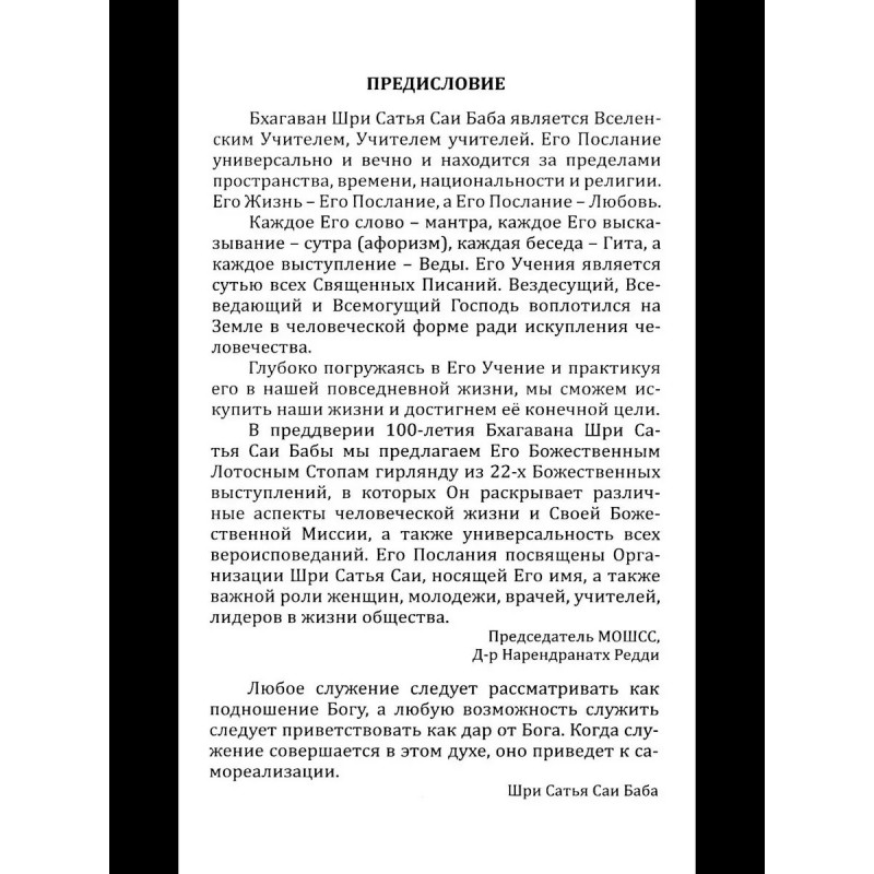 Этими посланиями Бхагаван Саи Баба обращается к сердцу и разуму человека. Он ведёт диалог с каждым, кто задаёт себе важные вопросы о смысле жизни, своём предназначении и природе бытия. Вдохновляющие и глубокие слова Саи Бабы служат проводниками в путешест