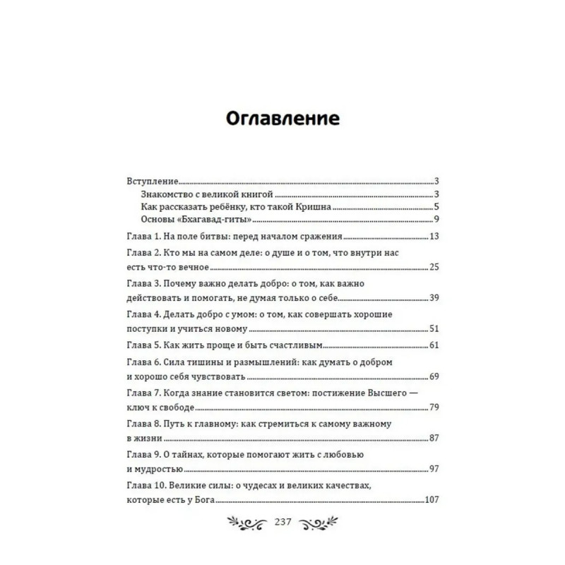 Эта книга — простое и вдохновляющее изложение вечной мудрости «Бхагавад-гиты», адаптированное для детского восприятия. Через понятные истории, яркие образы и доступный язык дети знакомятся с основами доброты, долга, самопознания и внутреннего спокойствия.