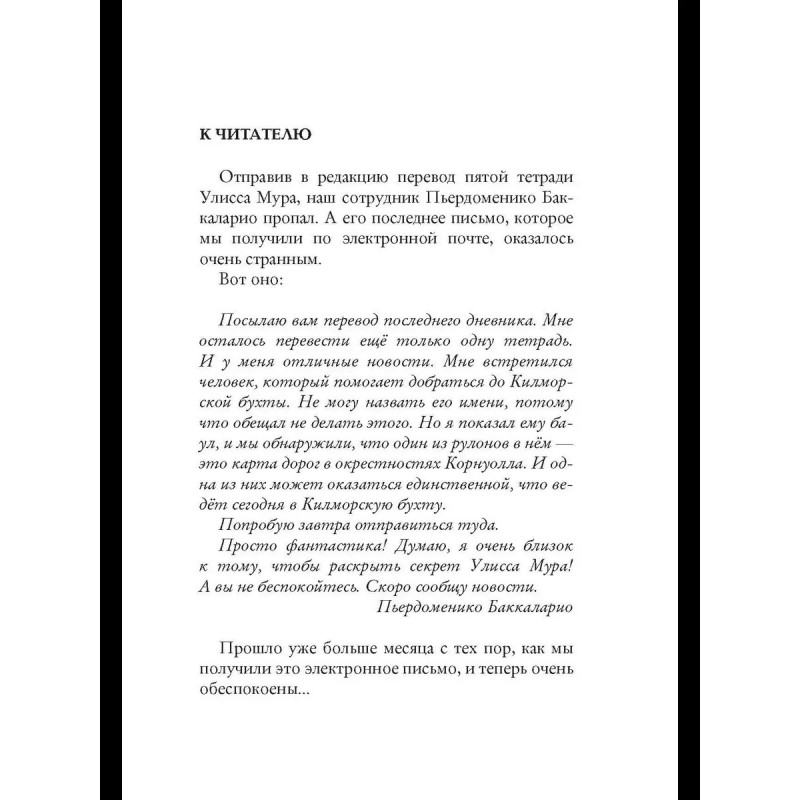 Кто такой на самом деле Улисс Мур? Джейсон, Джулия и Рик вот-вот узнают это. Но коварные Обливия и Манфред, оставшиеся в живых после очередного падения с утёса, тоже вот-вот осуществят свою мечту: проникнут на виллу «Арго» и пройдут сквозь Дверь времени. Чтобы остановить их, ребятам нужно найти Блэка Вулкана, старого друга Улисса, который водил поезда в Килморской бухте, и завладеть Первым ключом. Их ожидает новое путешествие. На этот раз в XII век, в Сад вечной молодости. Перед вами пятая часть дневника легендарного Улисса Мура.