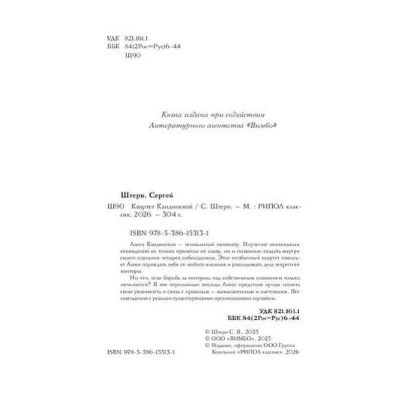 Алиса Кандинская — гениальный психиатр. Изучение осознанных сновидений не только принесло ей славу, но и позволило создать внутри своего сознания четырех собеседников. Этот необычный квартет помогает Алисе ограждать себя от любого влияния и расследовать дела секретной конторы. Но что, если борьба за контроль над собственным со- знанием только начинается? В эти переломные месяцы Алисе предстоит лучше понять свою уязвимость и связь с прошлым — вымышленным и настоящим. Все совпадения с реально существующими организациями случайны.