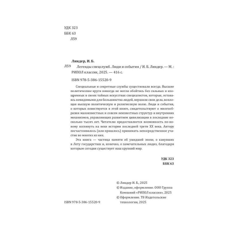 Характеристики Легенды спецслужб. Люди и события. Линдер И.Б.