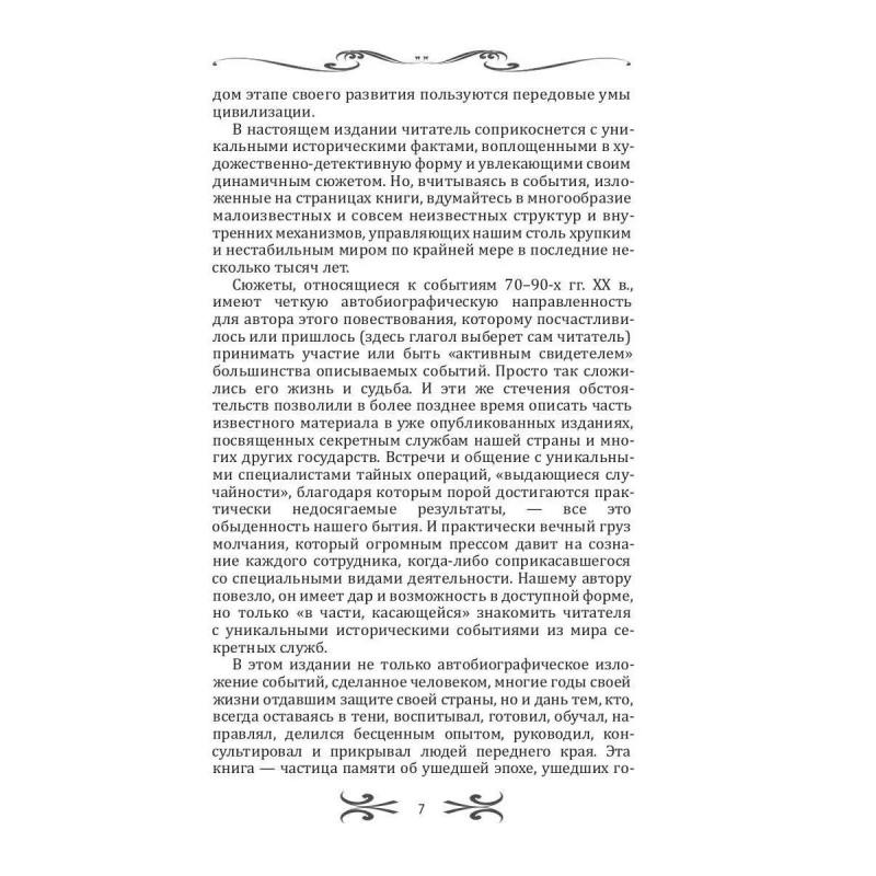Специальные и секретные службы существовали всегда. Высшие политические круги никогда не могли обойтись без сильных и изощренных в своих тайных искусствах специалистов, которые, оставаясь невидимыми для большинства людей, вершили свои дела, воплощая высшую политическую и религиозную волю. Люди и события, о которых повествуется в этой книге, свидетельствуют о многообразии малоизвестных и совсем неизвестных структур и внутренних механизмов, управляющих развитием цивилизации в последние несколько тысяч лет. Читателю предоставляется возможность по-новому взглянуть на вехи истории последней трети ХХ века. Автору посчастливилось (или пришлось) принимать непосредственное участие во многих из них.Эта книга — частица памяти об ушедшей эпохе, о канувших в лету государствах и, конечно, о замечательных людях, благодаря которым сегодня существует наш хрупкий мир.