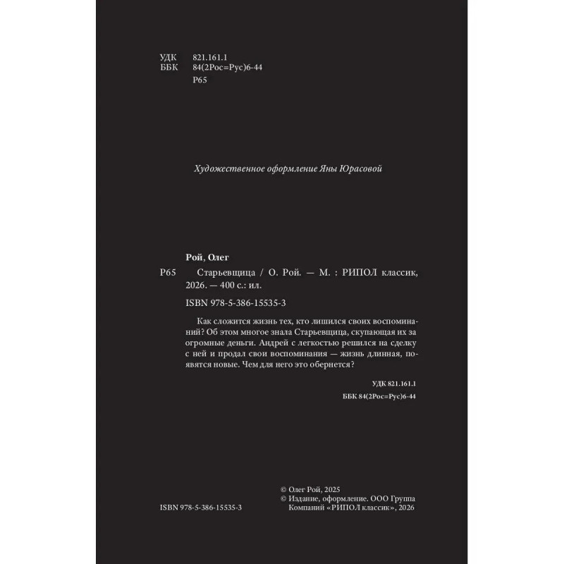 Как сложится жизнь тех, кто лишился своих воспоминаний? Об этом многое знала Старьeвщица, скупающая их за огромные деньги. Андрей с легкостью решился на сделку с ней и продал свои воспоминания — жизнь длинная, появятся новые. Чем ему это обернется? Полная версия «Старьeвщицы» от мастера интриги Олега Роя.