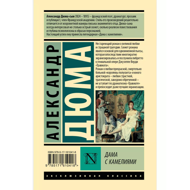 Дама с камелиями. Головокружительный роман о силе первой любви и жизни куртизанки. Книга основана на личной трагической истории Александра Дюма (сына). "Дама с камелиями" - одна из тех книг, что разбирают на цитаты, книга многократно переиздавалась, экранизировалась и ставилась на театральных сценах.