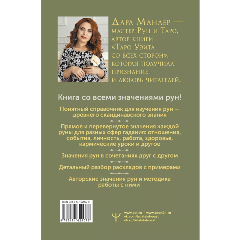 Погрузитесь в изучение древних скандинавских рун! Перед вами уникальный справочник, в котором собраны все секреты одного из самых древних инструментов гадания скандинавских рун. Вместе с ним вы сможете не просто найти ответы на насущные вопросы или заглянуть в будущее вы научитесь чувствовать энергетические потоки каждого элемента гадания и откроете для себя новые знания. Руны это наследие скандинавских Богов, которые известны как самые могущественные и загадочные правители небесного пантеона. Не удивительно, что им удалось создать такой сильный и точный инструмент для предсказания. Справочник содержит описание каждой руны в прямом и перевернутом значении. Также в книге вы найдете подробную практическую часть с примерами и детальным разбором раскладов, а также значения рун в сочетании друг с другом. Неважно, новичок вы или профессионал своего дела, эта книга удобна в использовании и применении для каждого. Новая книга Дары Манлер автора популярного, признанного читателями "Таро Уэйта со всех сторон"!