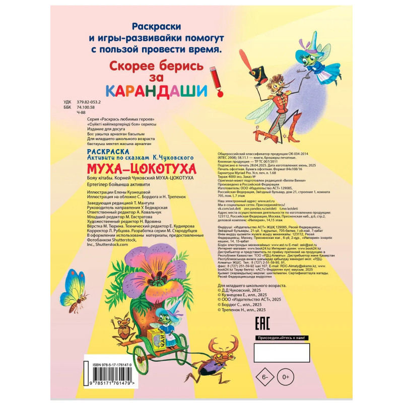 Погрузитесь в волшебный мир сказок Корнея Чуковского с нашей новой раскраской! Помогите Мухе спастись от злого паука! На страницах раскраски вы найдете иллюстрации, активити и задания для самых маленьких. Скорее хватай карандаши!