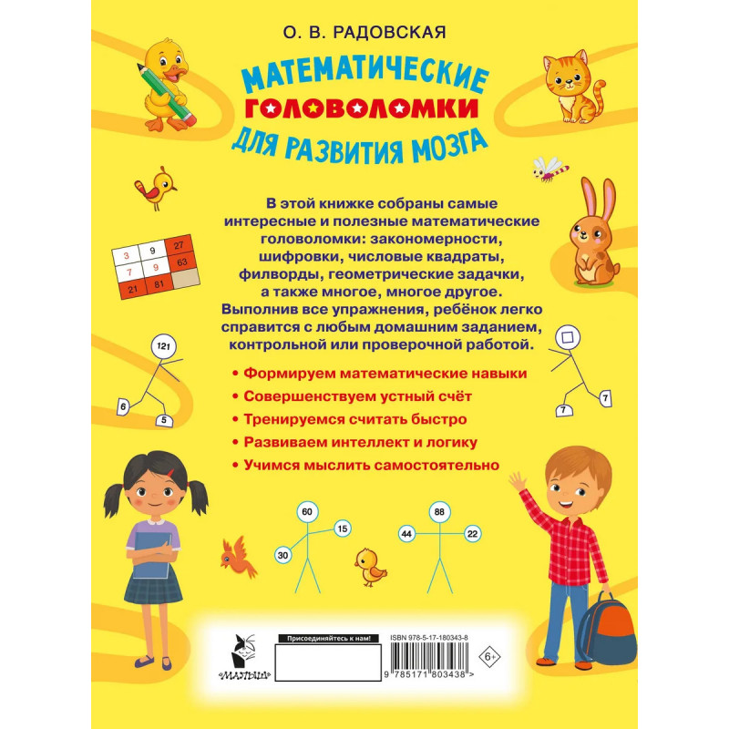 В сборнике «Математические головоломки для развития мозга» — только полезные задания для учеников начальной школы: закономерности, шифровки, числовые квадраты, филворды, геометрические задачи, а также многое другое. Решая головоломки на регулярной основе, школьники смогут развить математические способности и подготовиться к контрольным и проверочным работам. Книгу можно использовать для занятий дома и в классе по всем федеральным программам начальной школы.