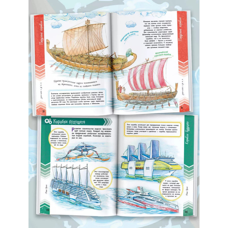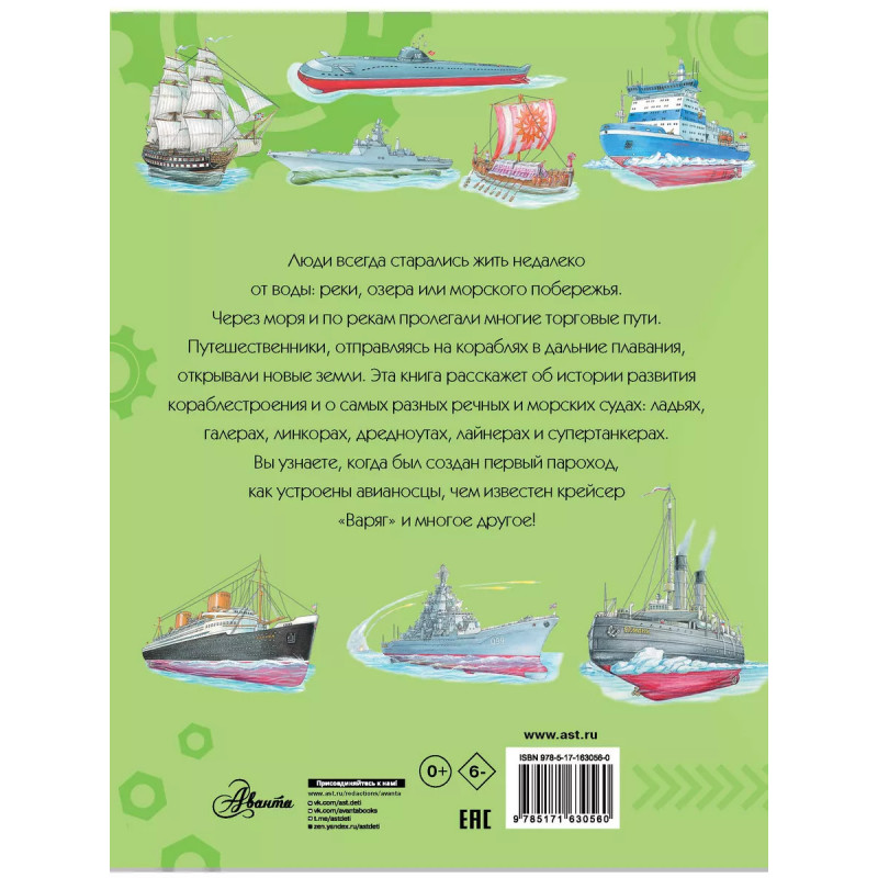 Люди всегда старались жить недалеко от воды: реки, озера или морского побережья. Через моря и по рекам пролегали многие торговые пути, а путешественники, отправляясь на кораблях в дальние плавания, открывали новые земли. Эта книга расскажет об истории развития кораблестроения и о самых разных речных и морских судах: ладьях, галерах, линкорах, дредноутах, лайнерах и супертанкерах. Вы узнаете, когда был создан первый пароход, как устроены авианосцы, чем известен крейсер "Варяг", как выглядели венецианские галеры и многое-многое другое. Для младшего школьного возраста.