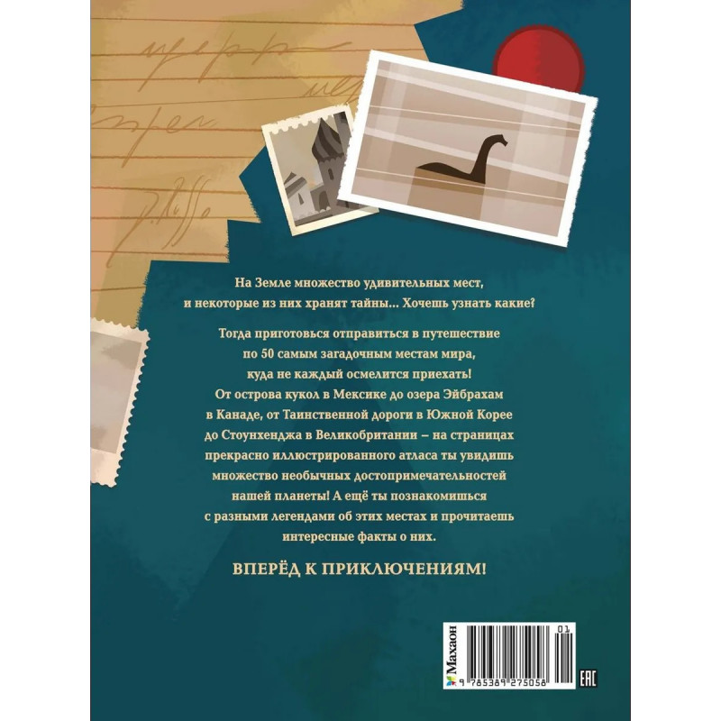 На Земле есть множество удивительных мест, и некоторые из них хранят тайны... Хочешь узнать какие? Тогда приготовься отправиться в путешествие по 50 самым загадочным местам мира, куда не каждый осмелится приехать! От острова кукол в Мексике до озера Эйбрахам в Канаде, от Таинственной дороги в Южной Корее до Стоунхенджа в Великобритании – на страницах прекрасно иллюстрированного атласа ты увидишь множество необычных достопримечательностей нашей планеты, познакомишься с разными легендами об этих местах и прочитаешь интересные факты о них. ВПЕРЁД К ПРИКЛЮЧЕНИЯМ!