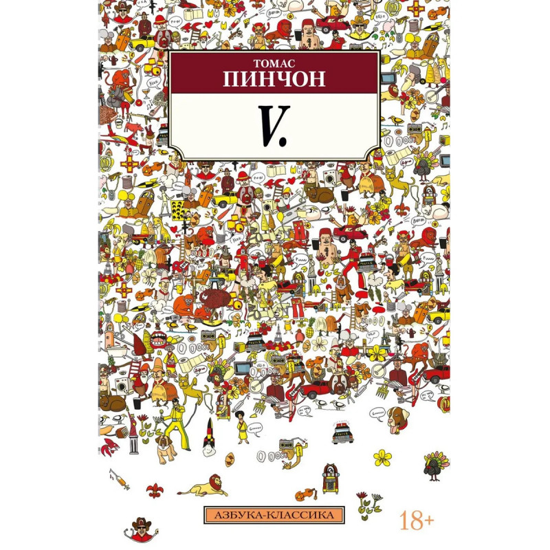 Томас Пинчон — наряду с Сэлинджером «великий американский затворник», один из крупнейших писателей мировой литературы XX, атеперь и XXI века, после первых же публикаций единодушно признанный классиком уровня Набокова, Джойса и Борхеса. В его дебютном романе «V.», удостоенном Фолкнеровской премии и вошедшем вшорт-лист Национальной книжной премии США, читатели впервые познакомились с фирменной пинчоновской одержимостью глобальными заговорами и тайными пружинами истории — и навеки очаровались. Здесь пересекаются пути Бенни Профана, «шлемиля и одушевленного йо-йо», и группы нью-йоркской богемы, известной как Цельная Больная Шайка, и Херберта Шаблона, через множество стран и десятилетий идущего по следу неуловимой V. — то ли женщины, то ли идеи...