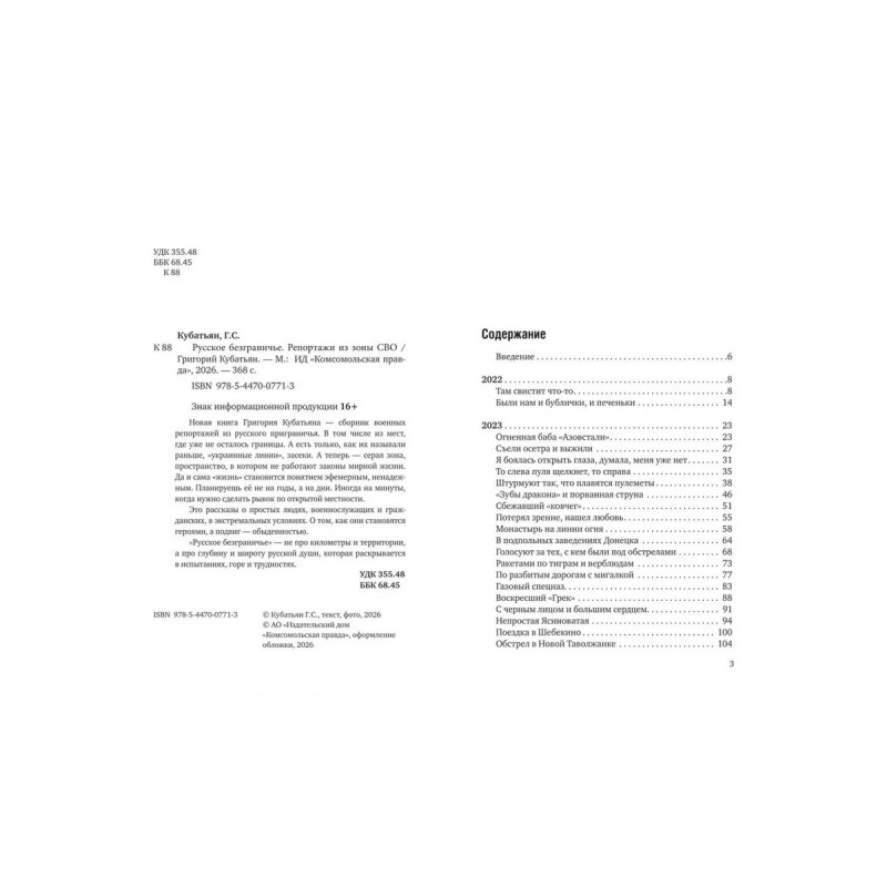 Характеристики Книга "Русское безграничье. Репортажи из зоны СВО."